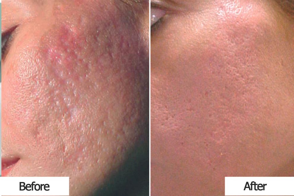 The fractional laser refines the skin texture, stimulates collagen, and helps to even out the skin, from one scar line to the entire face.